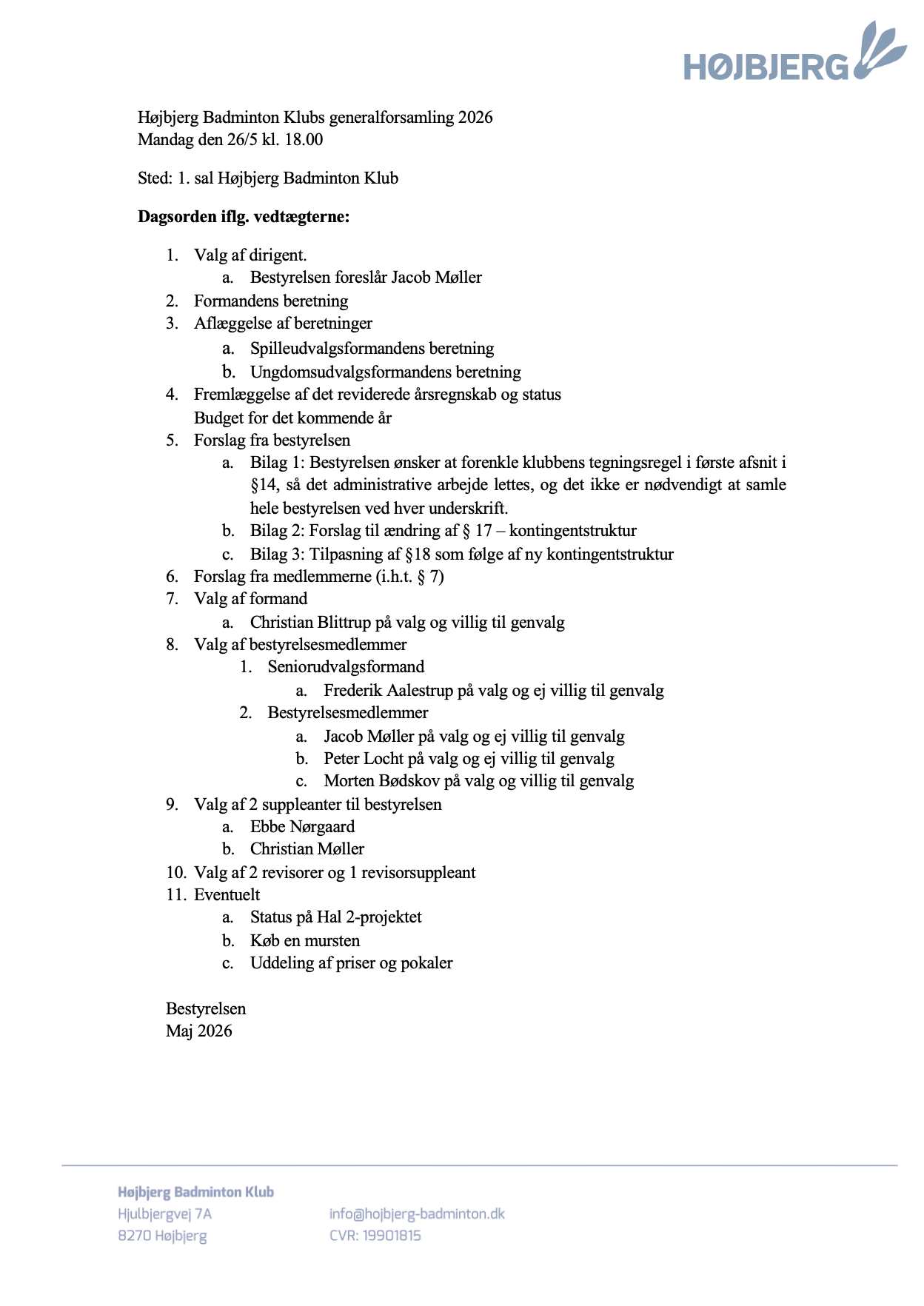 Vi afholder generalforsamling 26. maj kl. 18.00 og alle er velkomne.